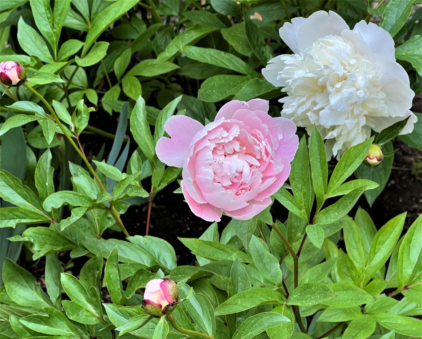 This year, peonies are blooming like never before. They come in different colors and shapes, but it feels like I have fragrant peony clouds floating around. The pink plain ones are nice, too, thanks to their bright color and beautifully shaped petals.