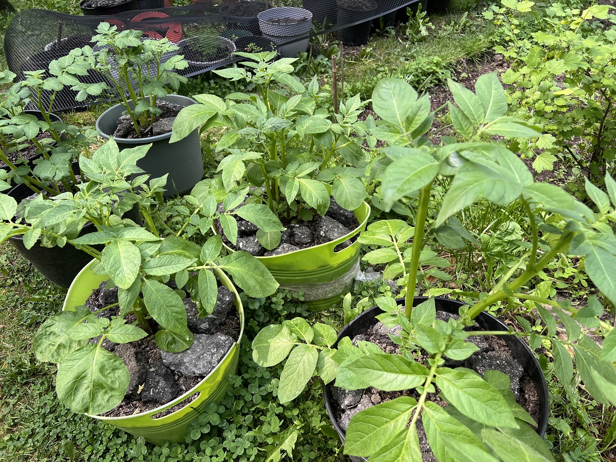 I am planting potatoes in pots this year. Nothing compares taste-wise to your own grown potato. I am a potato person, always have been, that’s pretty much my bread. My potato plants are getting bigger by the day, it looks like they will be blooming very soon.